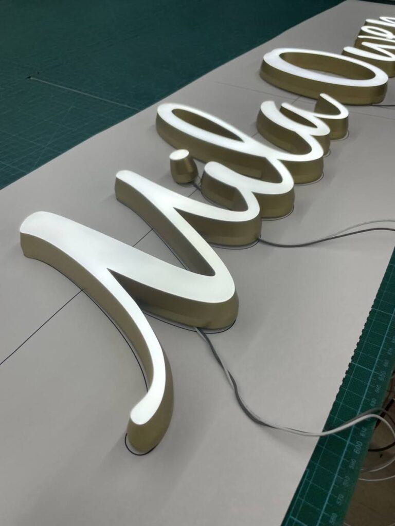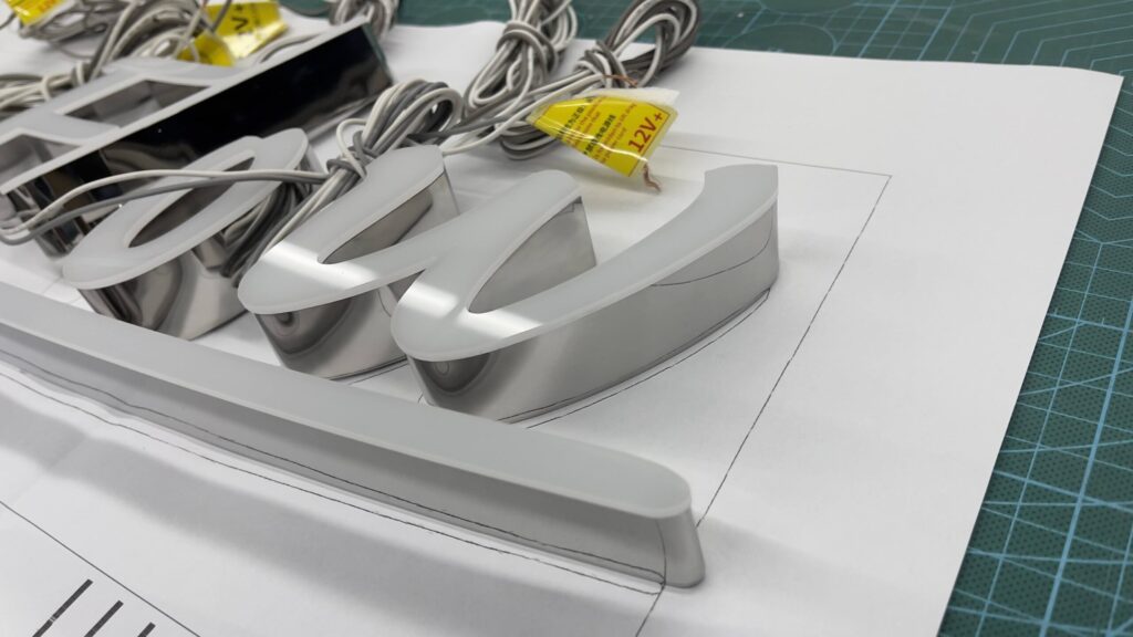 ▲ 正面発光チャンネル文字の製作例。繊細なデザインも忠実に再現できます